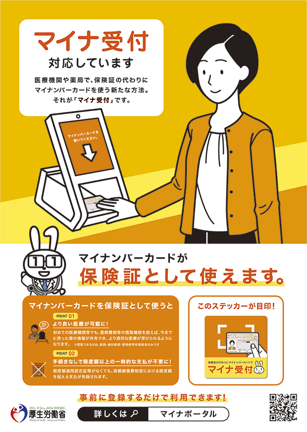 マイナンバーカードの健康保険証利用について、詳しくは厚生労働省WEBサイトをご覧ください。