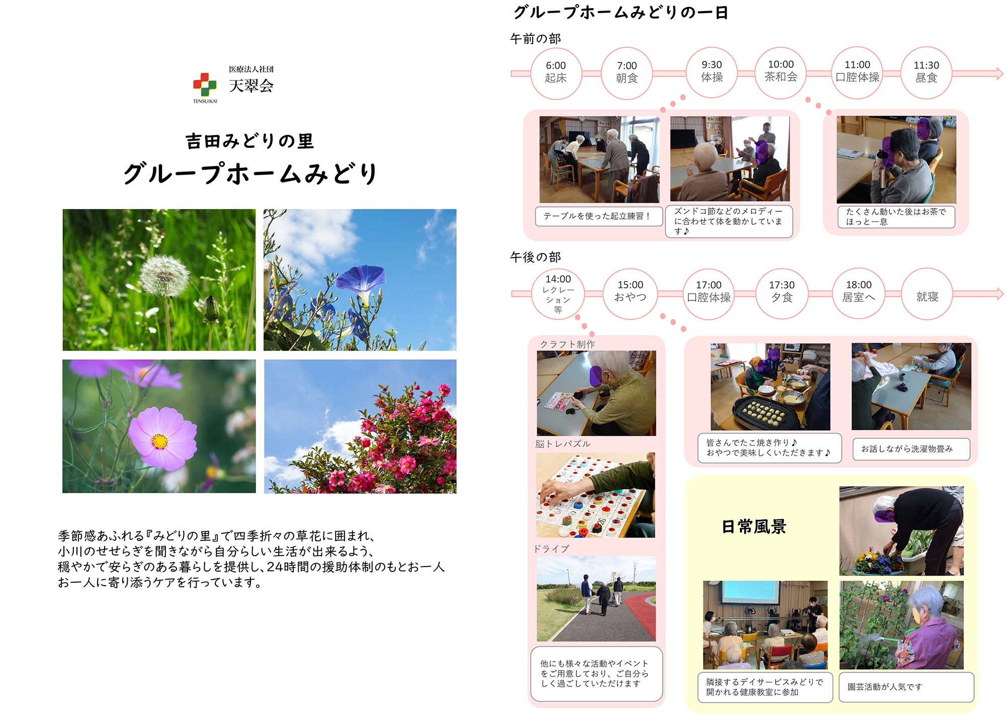 同じ法人内に病院・介護老人保健施設があり、状況に応じて連携しながら、切れ目のない支援を行います。